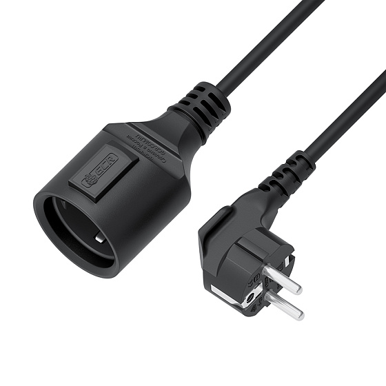 The grounded extension cord is made of high-quality materials and is equipped with a molded Euro socket on one side and a non-detachable angled Schuko Euro plug on the other. The cable has a copper conductor cross-sectional area of 1.5 mm², allowing it to withstand significant loads and provide stable power supply to connected devices. The rated load power is 3500W, with a current of up to 16A. An ideal assistant when working with electrical equipment that has a short standard power cord.