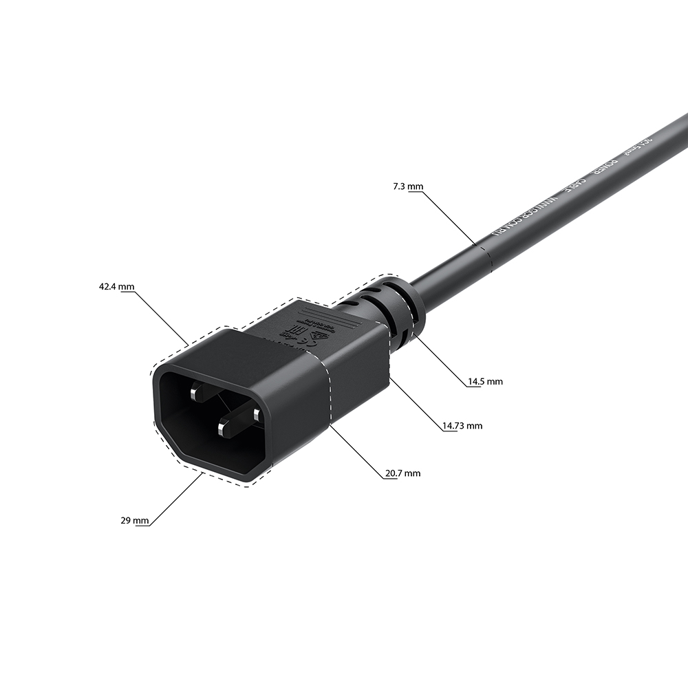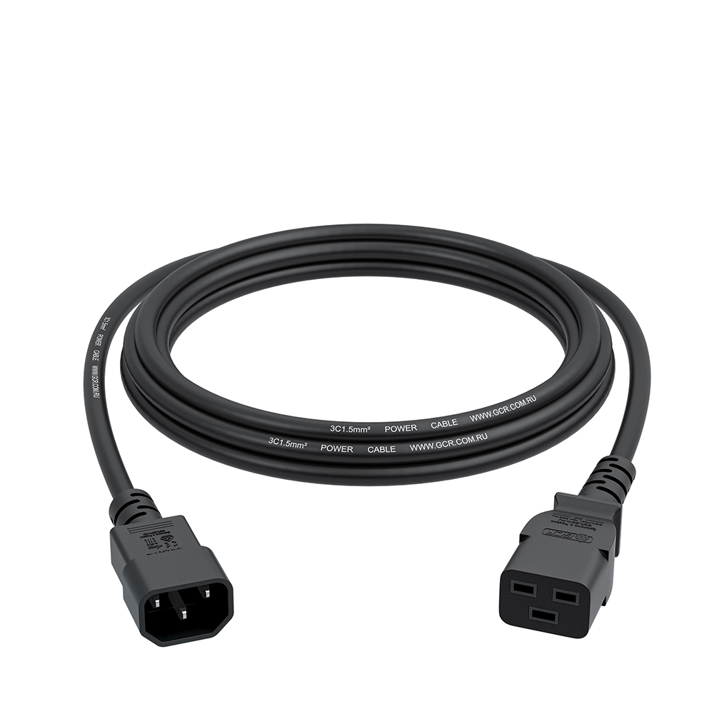 Кабель питания с площадью сечения медного проводника 3*1,5мм2, оснащенный с одной стороны разъемом типа C19, с другой - C14, обеспечивает стабильную подачу питания для устройств с высоким энергопотреблением, гарантируя плотное прилегание и безопасное соединение между источником питания и подключенным оборудованием. Широко используется в дата-центрах, серверных комнатах и других средах с высокой плотностью подключения.