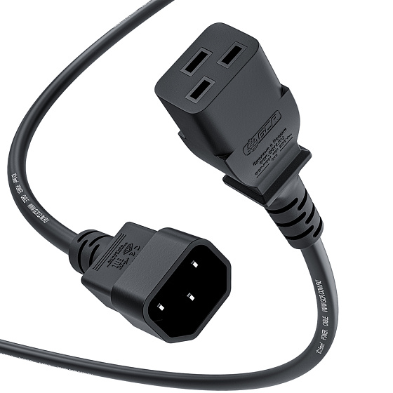 Кабель С19-С14 серии PROF предназначен для подключения различного серверного, IT или майнинг оборудования, промышленных компьютеров и других устройств к источникам переменного тока, таким как ИБП или распределительные блоки питания с компьютерной розеткой С13.