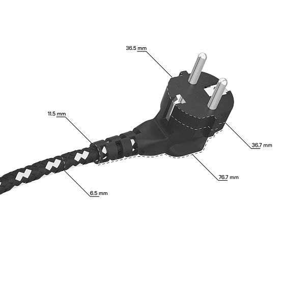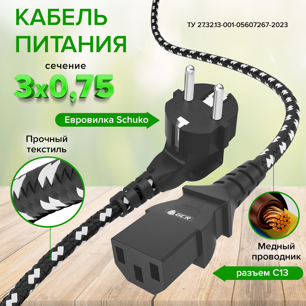 The textile power cable with an original color scheme from GCR and a convenient length of your choice allows for comfortable placement of equipment in home or office spaces, guaranteeing stability, safety, and reliability during operation.