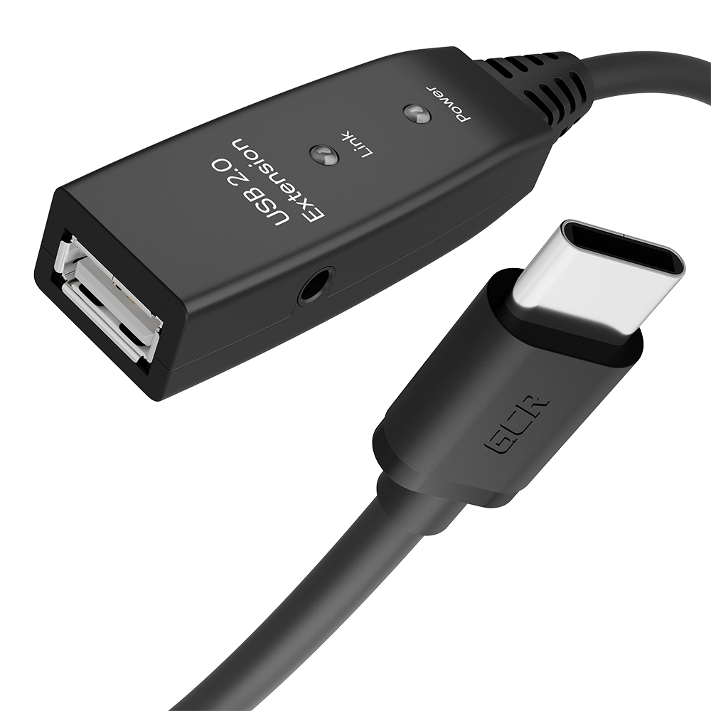 GCR PRO Активный кабель переходник Type-C на AF USB 2.0 кабель с усилителем сигнала + доп питание