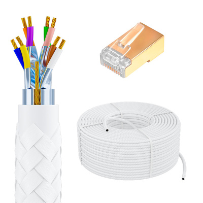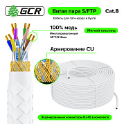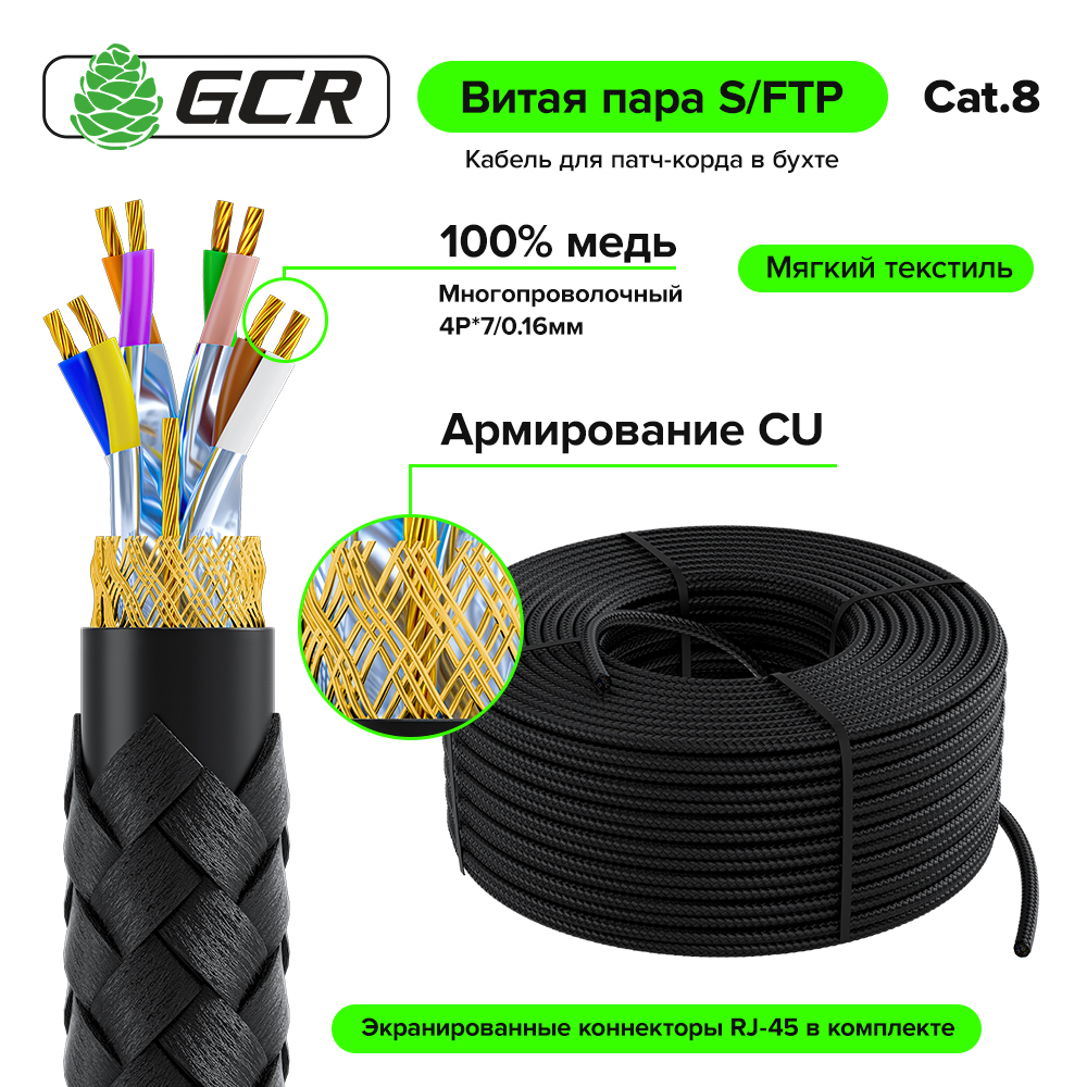 GCR PRO Кабель LAN DIY витая пара в бухте S/FTP кат.8 медь в оплетке текстиль + коннекторы RJ-45 8p8c