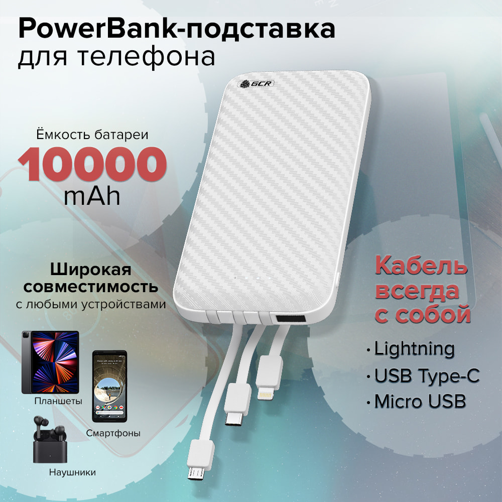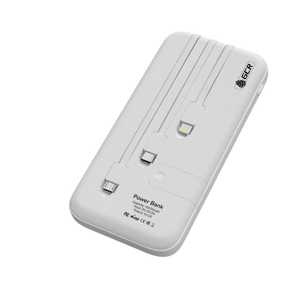 GCR PRO PowerBank 10000mAh встроенные кабели MicroUSB/Type-C/Lightning