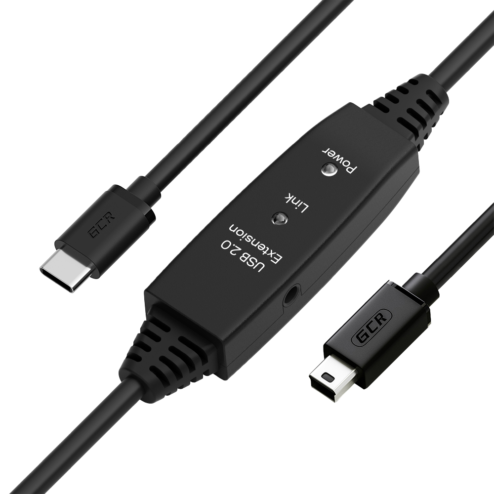 GCR PRO Активный кабель Type-C/MiniB USB 2.0 с усилителем сигнала + доп питание