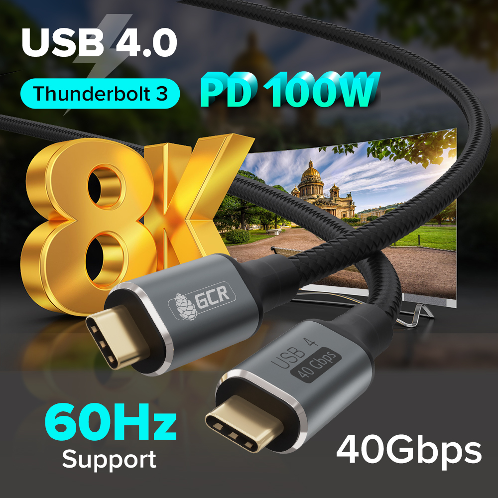GCR PRO Кабель USB4 Type-C 100W 40Гбит/с 8K60Hz в оплетке нейлон