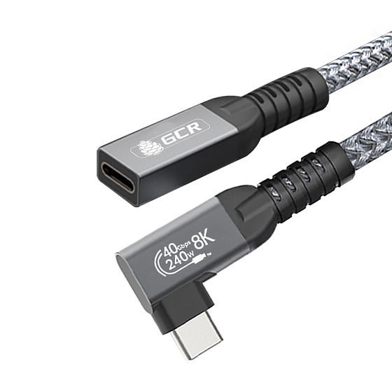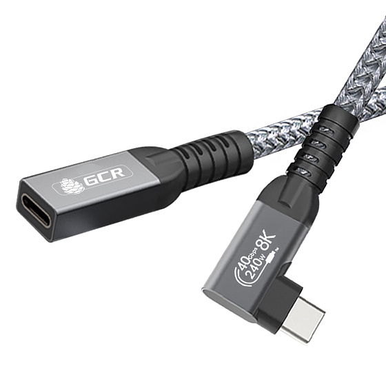 GCR PRO Удлинитель угловой USB4 Type-C 240W 40Гбит/с 8K60Hz боковой разъем в оплетке текстиль