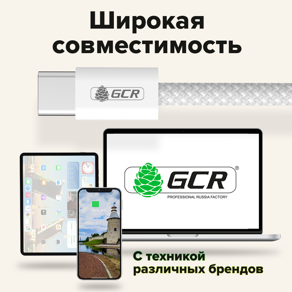 Кабель USB Type C / Type C идеально подходит для быстрой зарядки iPhone, iPad и MacBook. Также его можно использовать для подключения смартфонов Android, планшетов, ноутбука, компьютера, повербанка, GPS навигатора, жесткого диска, часов и других устройств с разъемом Type C.
