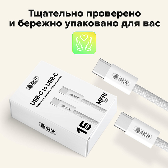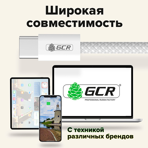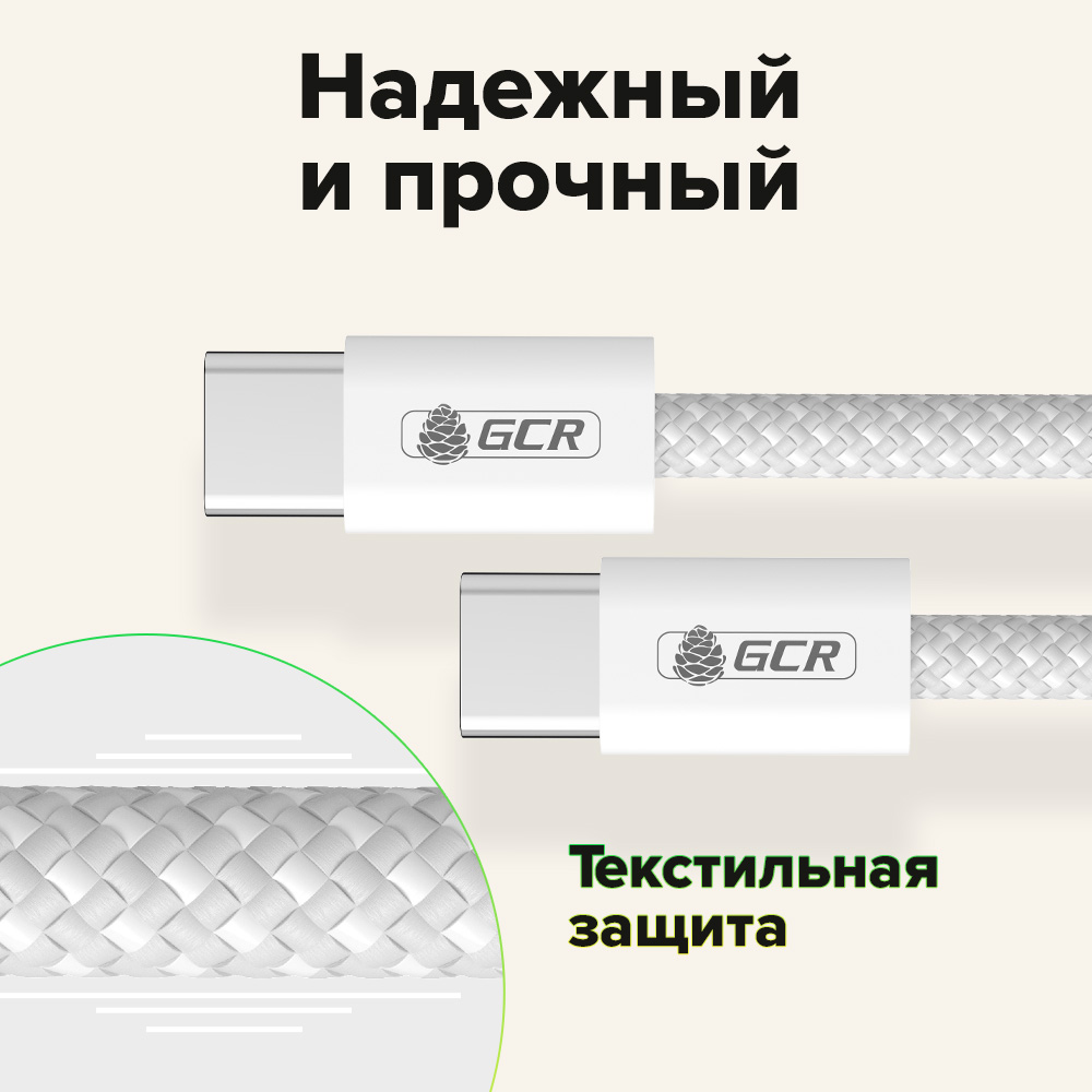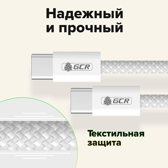 GCR PRO Кабель Type-C/Type-C 100W PD быстрая зарядка в оплетке текстиль