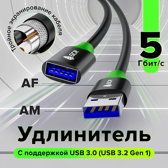 Удлинитель USB 3.0 (USB 3.2 Gen 1) - это соединительный кабель формата AM / AF необходимый для подключения USB устройств на высокой скорости в труднодоступных местах для более комфортного использования и защиты USB-разъемов вашей техники от расшатывания. Провод обеспечивает передачу данных со скоростью до 5 Гбит/с, что в 10 раз быстрее, чем USB 2.0 позволяя быстро и эффективно синхронизировать файлы, фотографии, видео и другие данные между устройствами USB. Имеет обратную совместимость с портами USB более ранних версий.