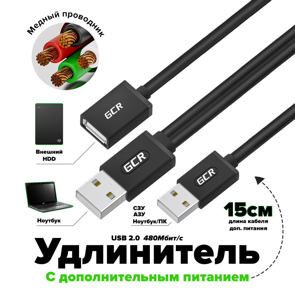 GCR PRO Extension Cable USB 2.0 AM/AF with extra power