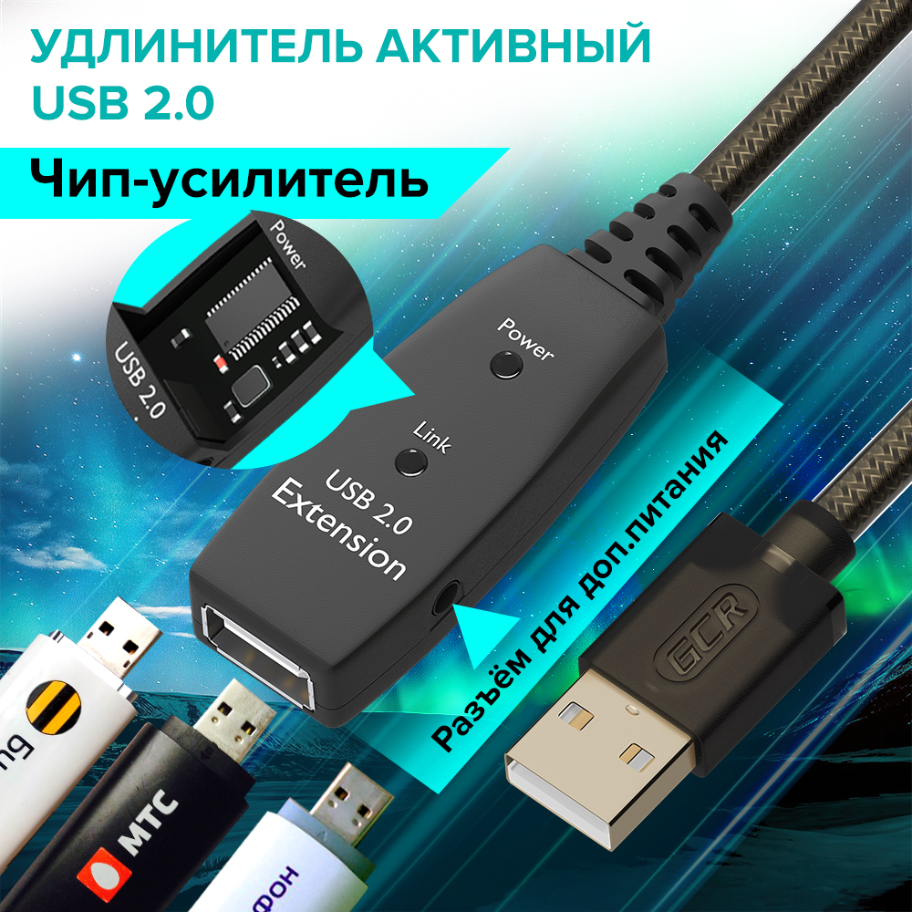 Активный удлинитель USB 2.0 AM/AF расширяет соединение между компьютером, ноутбуком, телевизором и периферийными USB устройствами, включая жесткие диски, концентраторы USB, мыши, клавиатуры, флэш-накопители, принтеры и многое другое.
