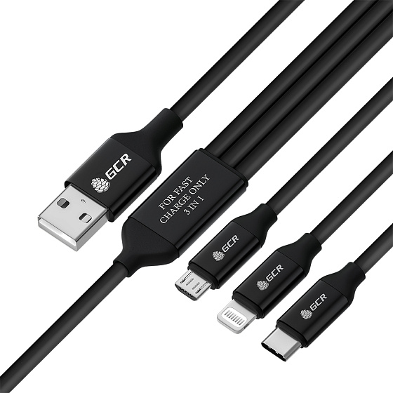 GCR PRO Cable 3v1 MicroUSB TypeC Lightning for charging NO Data