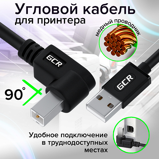 GCR PRO Кабель USB 2.0 AM/BM угловой правый