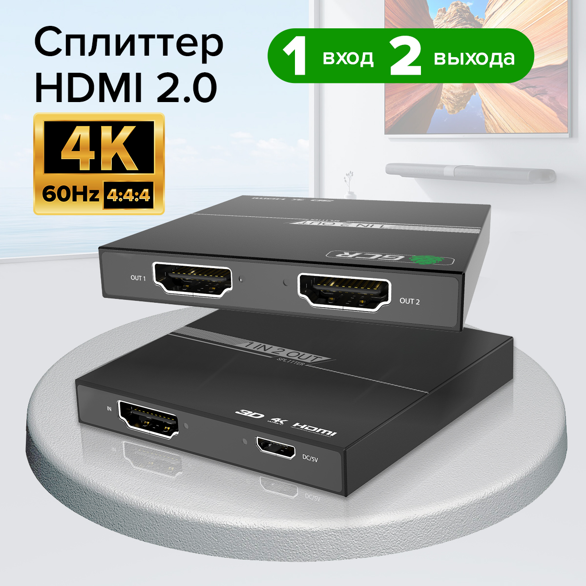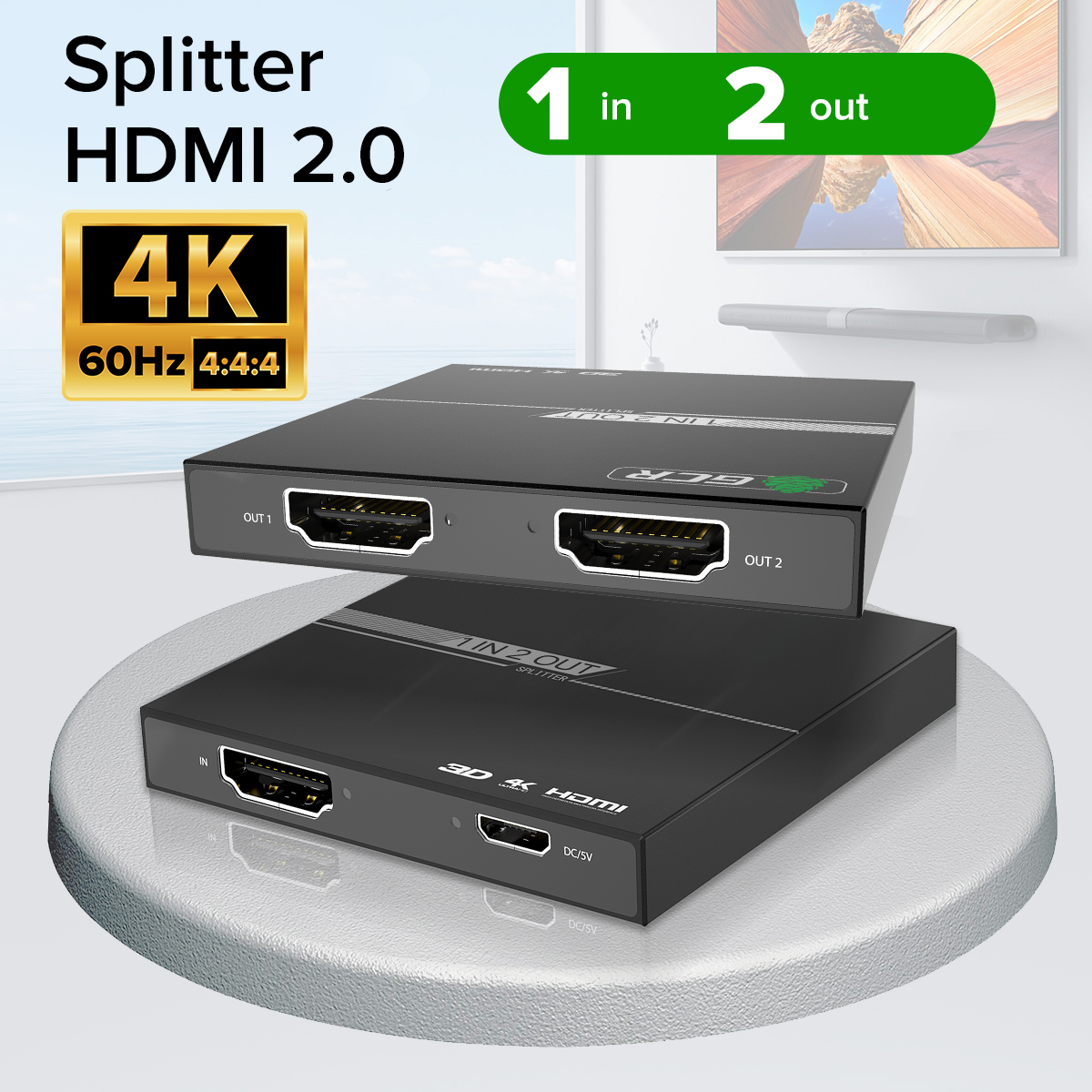 GCR PRO HDMI 2.0 Splitter 1 in 2 out, 4K60Hz, HDCP 2.2, mini size 65×65×10mm